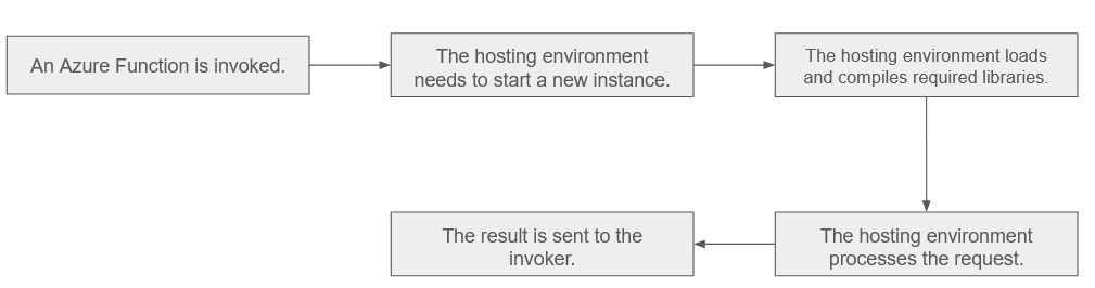 When a new request comes in or an event triggers the function, the hosting environment needs to start a new instance to handle the workload. This process of starting a new instance from a dormant state is known as a "cold start." Cold starts typically take longer to execute than subsequent invocations, where the function instances are warm and readily available. On the contrary, cold start is not a concern for non-serverless architectures because, in theory, there are always active instances, and thus, requests are instantly satisfied.